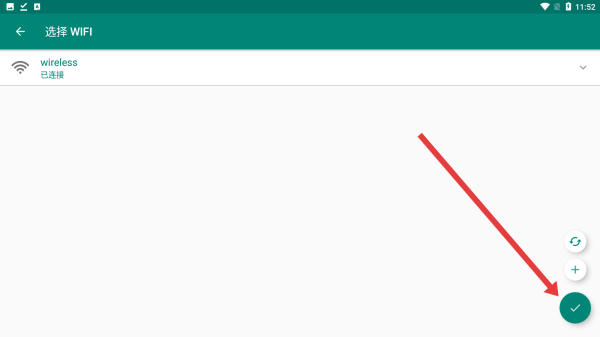 3、在选择WIFI界面选定目标网络后,点击右下角绿色对勾确认按钮,完成WIFI模拟的网络设置操作。