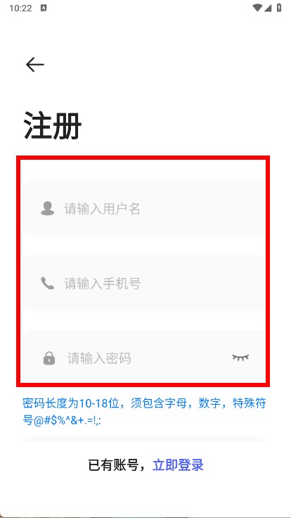 3、在注册页面,输入用户名、手机号和密码。