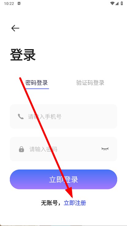 2、进入登录页面后,点击无账号,立即注册。