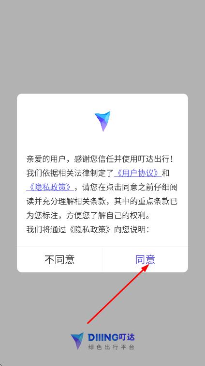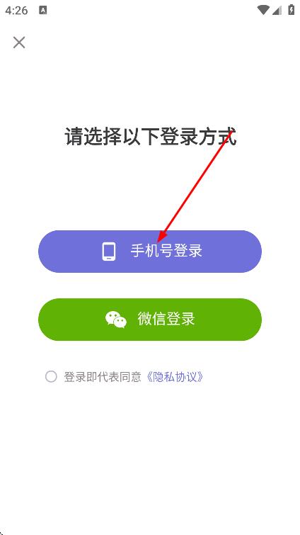 1、在用户协议和隐私政策弹窗中,点击同意,进入登录方式选择页面。