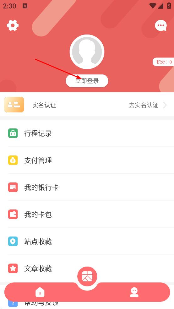 2、在个人中心页面,点击“立即登录”按钮,跳转到快速登录界面,准备进行账号登录操作。