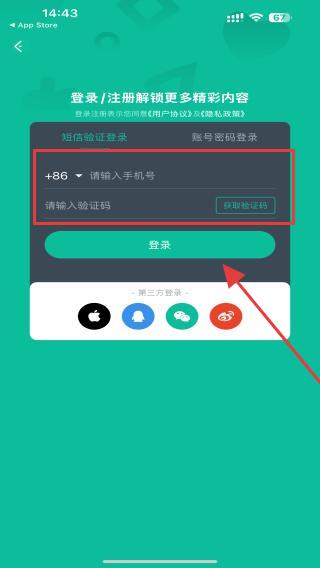 3、输入手机号,点击获取验证码,填入收到的验证码后,点击登录。