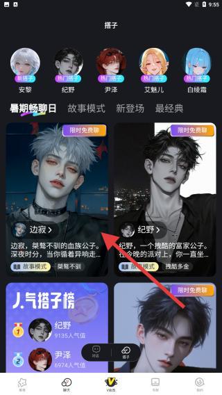 3、点击聊天的页面时,会跳出陪你一起看漫画的聊天搭子,在上方比较经典的ip角色内进行选择。