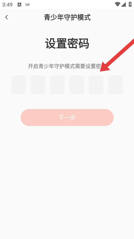 3、在设置密码页面,输入要设置的密码,即可开启青少年模式,该模式会对内容等进行规范。