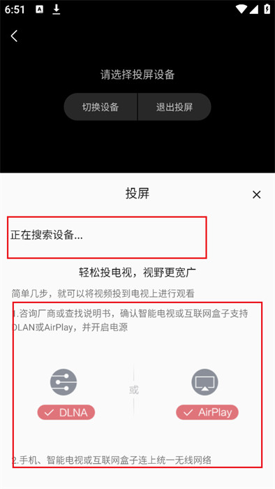 4、最后,在弹出的页面上,能看到软件正在搜索设备,只需要稍等几秒,就能看到投屏的画面。