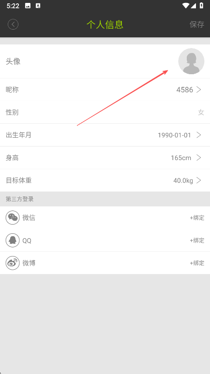 3、在个人信息页面,点击头像图标,根据提示选择从相册中选取图片或者拍照,设置完成后点击保存。