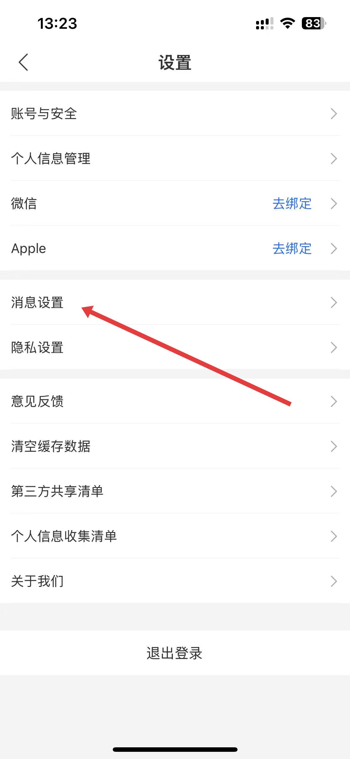 3、在设置页面里,点击消息设置选项,进入消息相关设置界面。