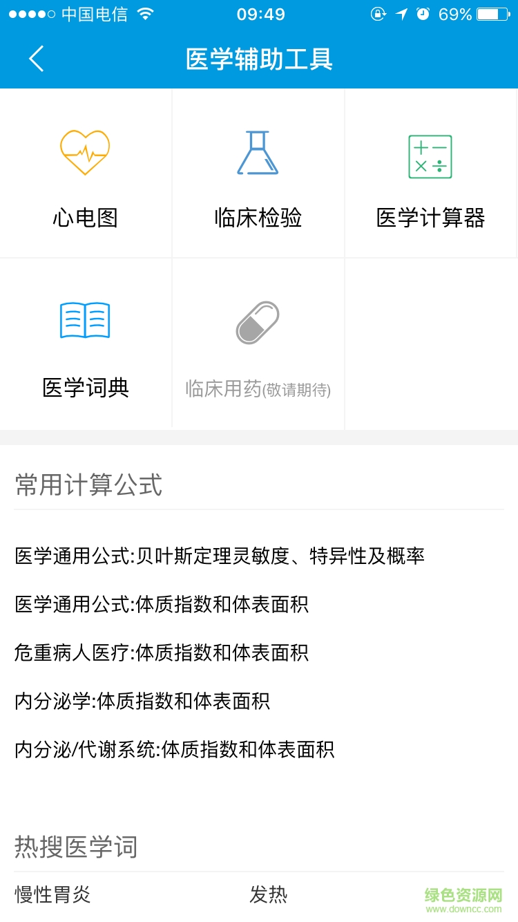 目前已上线医学计算器、医学词典、心电图、临床检验四种医学小工具,在线计算、中英文名词查询,是临床医生日常工作的好帮手。