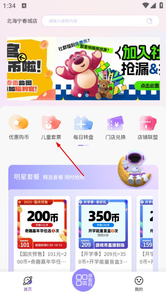 1、打开两京的首页,点击上面的儿童套票选项。