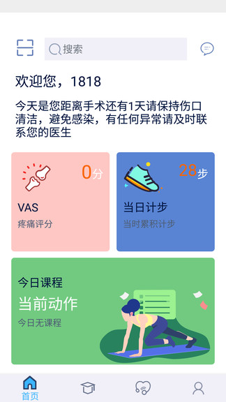 关节医生是一款非常实用的关节医疗app,软件上有各种关节损伤的术后康复课程,由权威机构研制帮助患者更好的恢复。还有各种运动的和课程的记录,方便查看当日运动量。软件还提供了手术提醒功能,让用户清楚地知道自己的手术日期,防止遗忘,耽误手术。