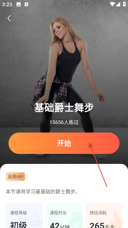 3、在基础爵士舞步课程详情页,点击开始按钮,准备开始课程。