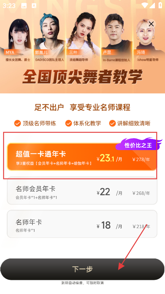 4、若要开通会员,选择超值一卡通年卡,点击下一步即可正式进入课程。