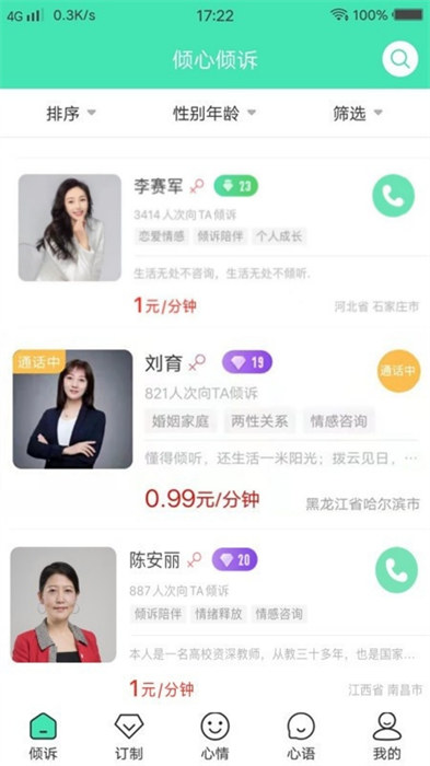 【情感倾诉】恋爱情感、婚姻家庭、婆媳关系......倾心倾诉APP在此为您守候,隐私通话,匿名倾诉,情感专家、婚姻家庭咨询师组成的专家团队,用温暖又专业的力量为您解决实际的问题。
