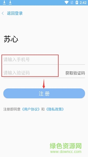 输入手机号码信息,再次点击注册按钮,注册成功后返回登录界面使用!