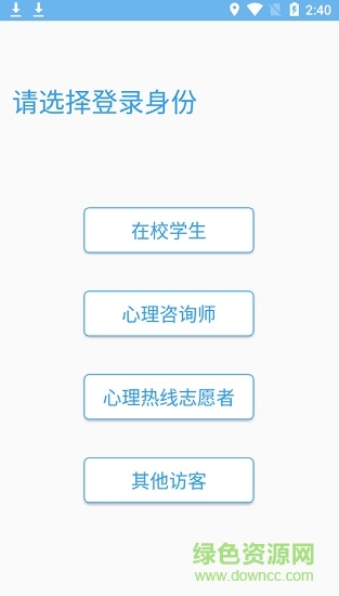 大家下载app后进入到登录界面,这里提供了多个登录身份,访客用户需要进行注册才可以登录使用;