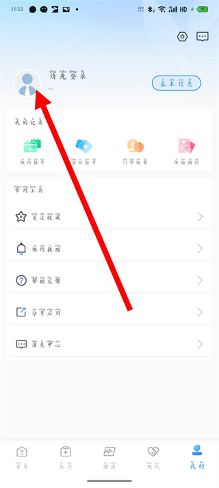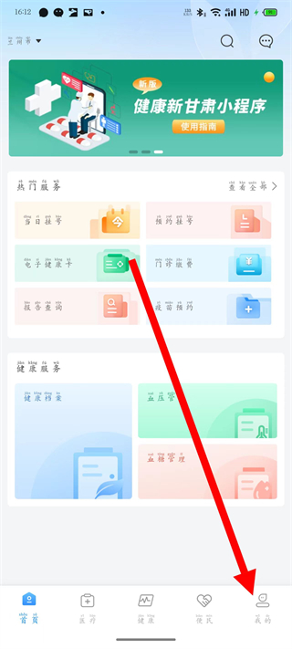 1、打开健康甘肃,点击底部导航栏我的,进入个人中心页面。