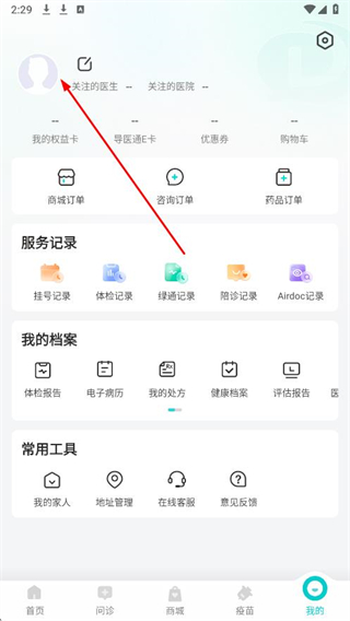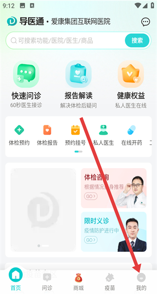 1、打开导医通APP,点击右下角的我的选项,进入个人中心界面。