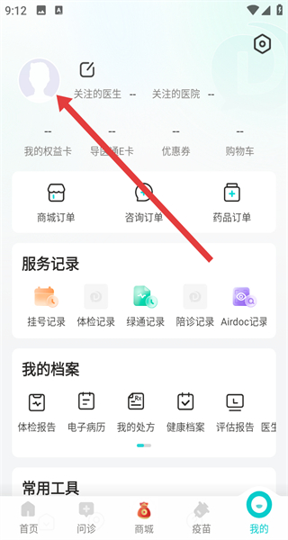 1、打开导医通APP,点击导航栏中的我的。