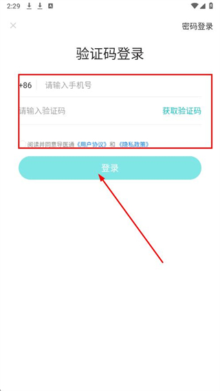 4、在密码登录模式下,输入手机号和登录密码后,点击登录按钮,完成密码登录操作。