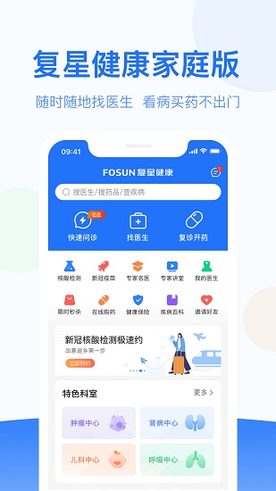 复星健康家庭版,随时随地找医生,看病买药不出门