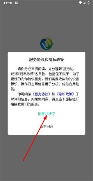 1、在使用协议隐私政策弹窗中点击同意按钮,进入登录页面。