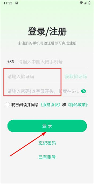 3、在登录页面填写验证码和密码后,点击登录完成登录操作。