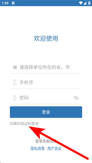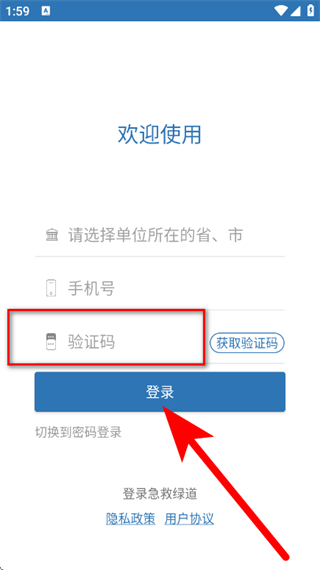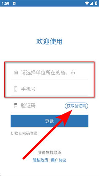 1、打开急救绿道,在弹窗中点击同意,进入登录页面。