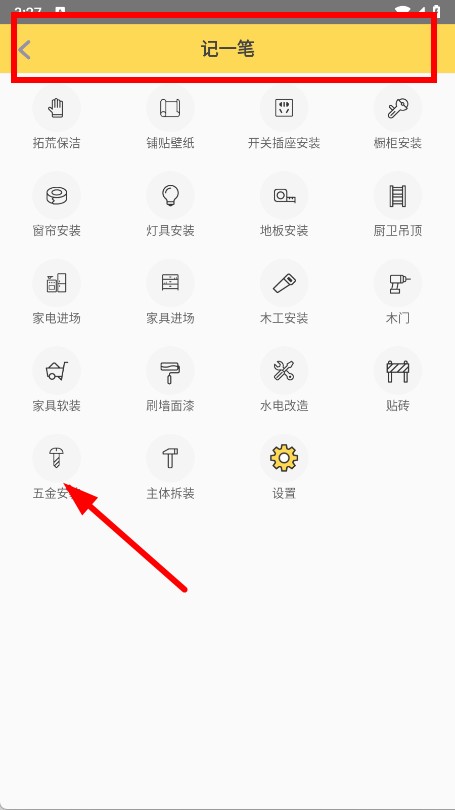3、在记一笔页面,选择五金安装类别。