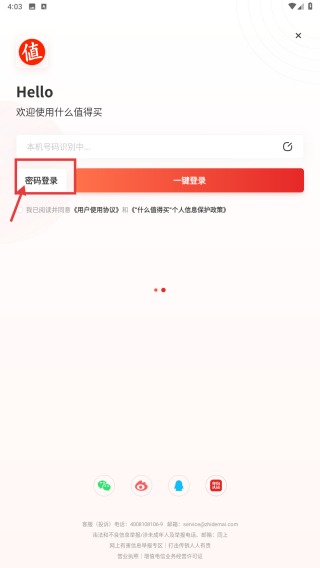 3、在登录界面,点击密码登录选项,进入账号密码登录页面。