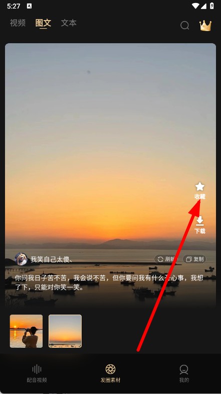 4、找到目标素材,点击素材右侧的收藏按钮,即可将该图文素材收藏。