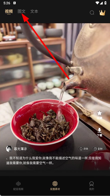 3、在发圈素材页面顶部,点击图文分类标签,切换到图文素材展示列表。