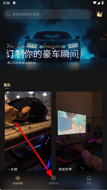 2、登录后,点击底部导航栏的发圈素材选项,进入素材浏览页面。