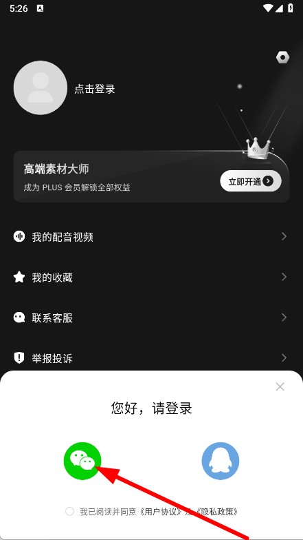 1、打开app,在登录弹窗中选择微信登录方式完成登录。