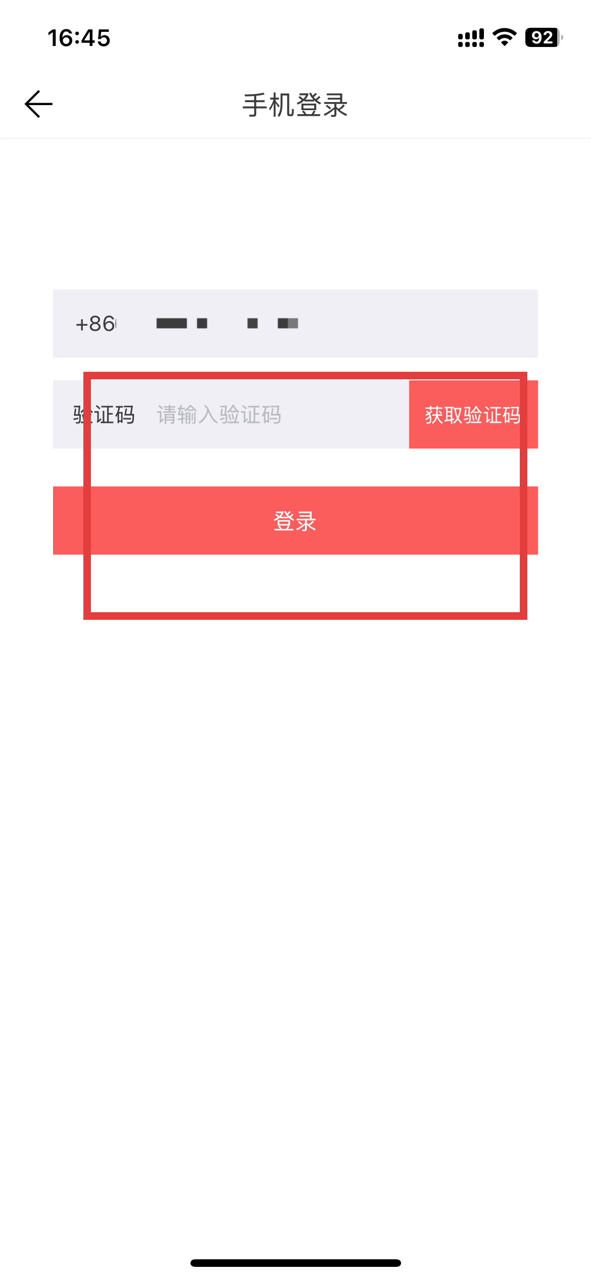 4、点击获取验证码按钮并填写,点击登录按钮,即可完成账号登录。