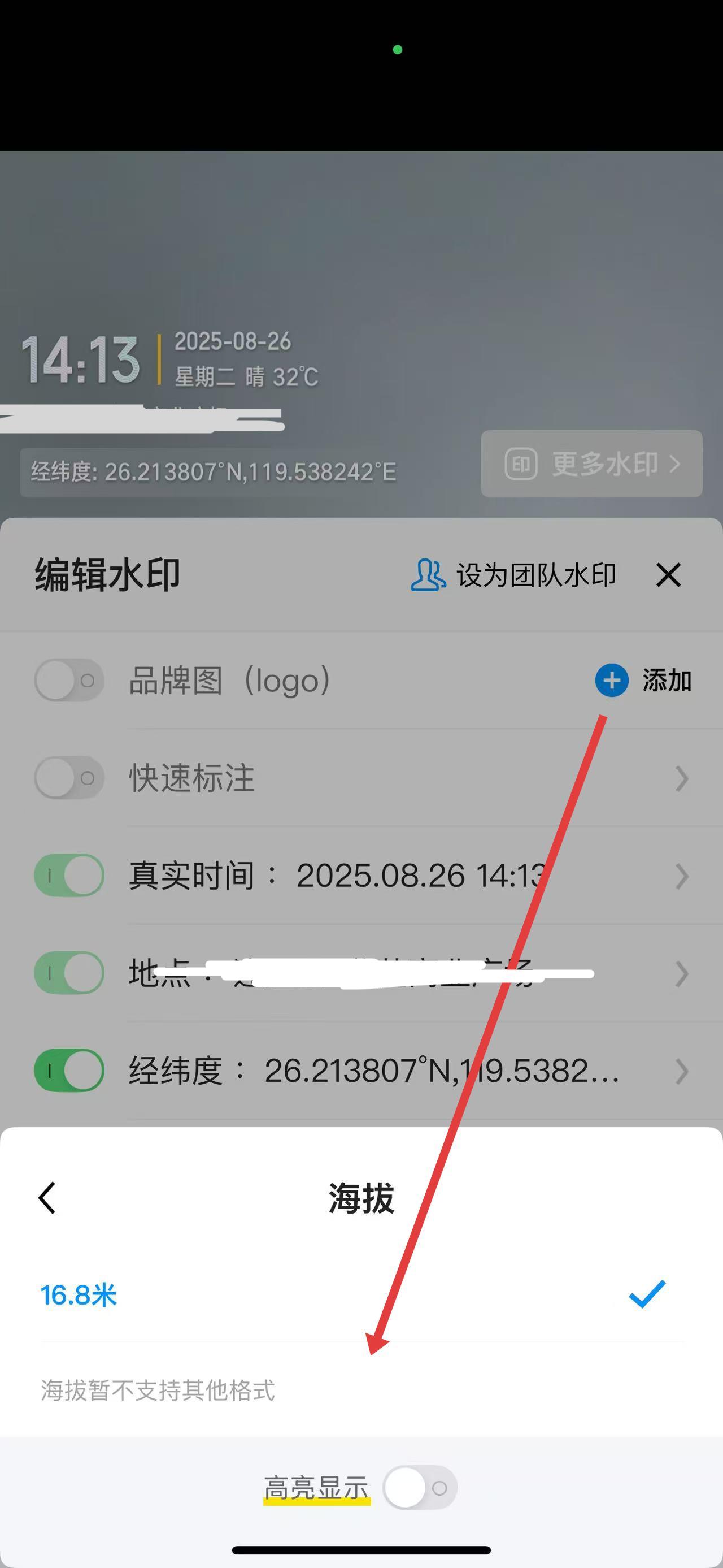 3、开启海拔功能后,确认显示格式目前暂不支持其他格式,按需选择是否高亮显示即可。