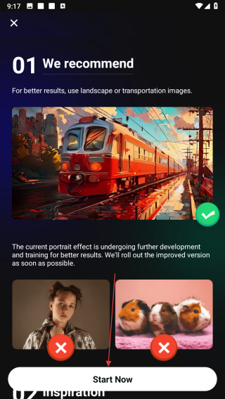 2、在推荐说明页面,继续点击Start Now,进入手机相册的图片选择界面。