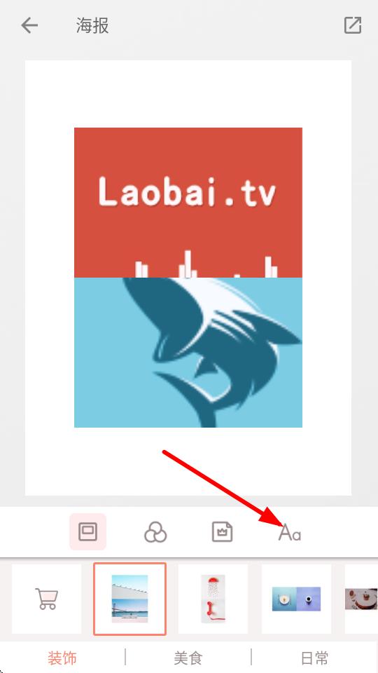 3、在海报编辑界面,点击下方带有Aa标识的文字功能按钮。