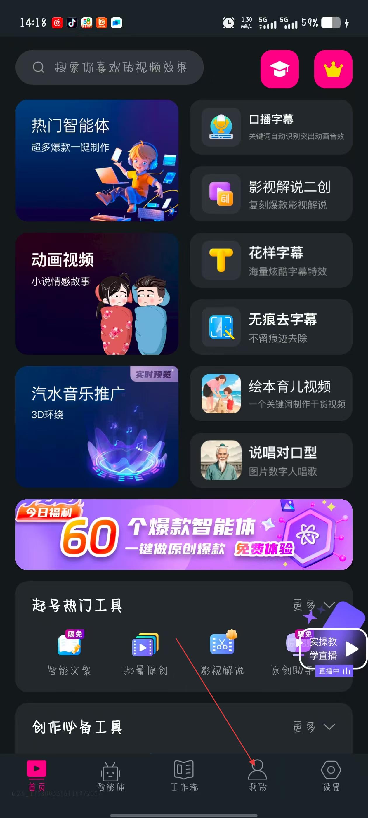 1、打开美册视频制作APP,点击界面底部我的,进入个人页面。