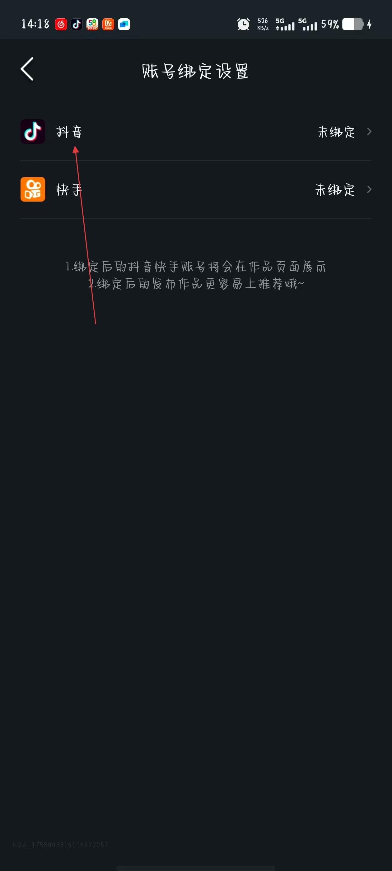 3、在账号绑定设置页面,点击抖音选项,弹出抖音账号绑定窗口。