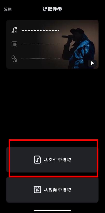 3、进入提取伴奏界面后,选择从文件中选取或者从视频中选取来获取你要提取伴奏的源文件。