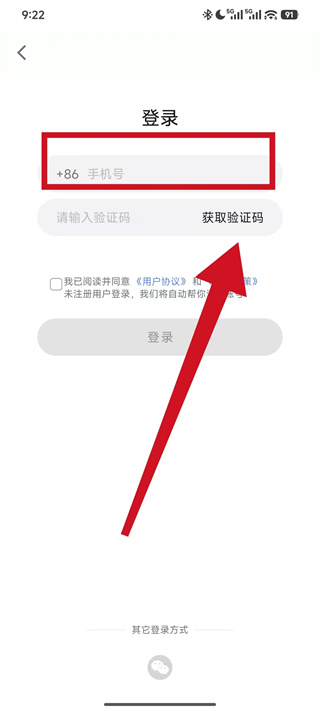 2、在登录选择页面,点击其他方式,进入手机号登录页面。