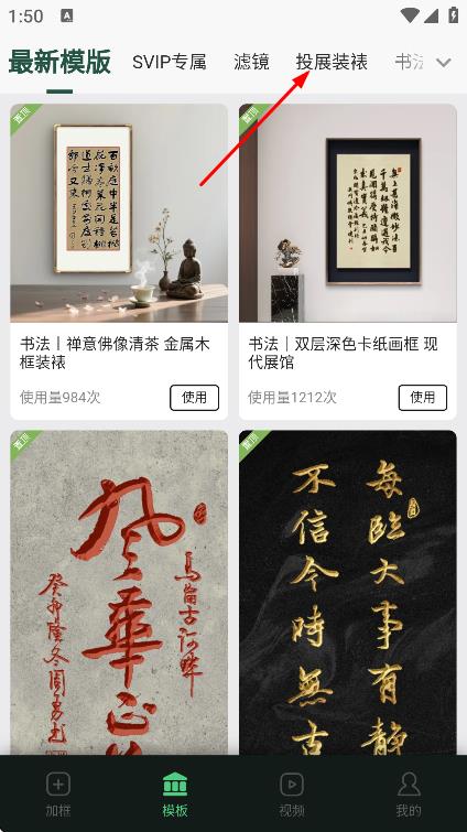 2、点击投展装裱,进入投展装裱模板页面。
