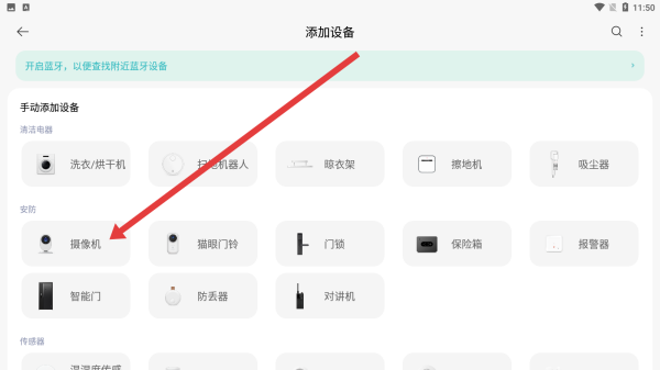 2、进入到添加设备页面中,选择摄像机图标区域点击进行添加。