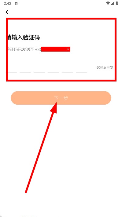 4、输入验证码后点击下一步,完成账号登录或注册。