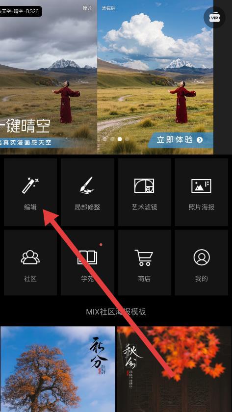 1、打开mix滤镜大师app,点击界面中的编辑选项。