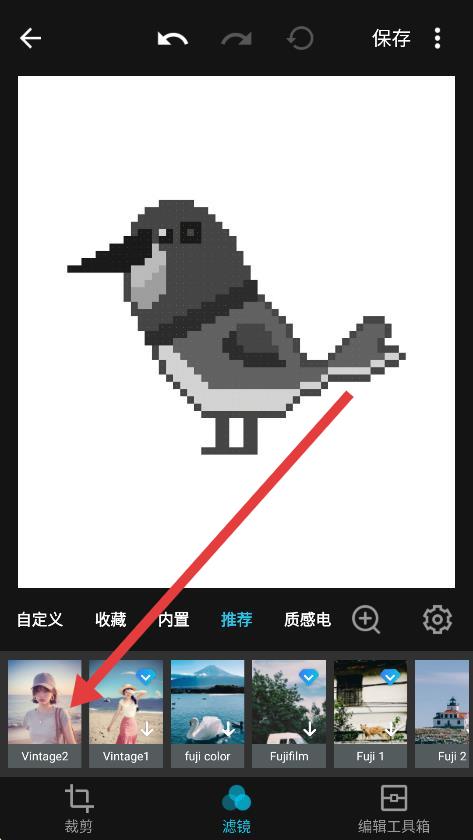 3、进入编辑界面后,找到想要收藏的滤镜并点击。