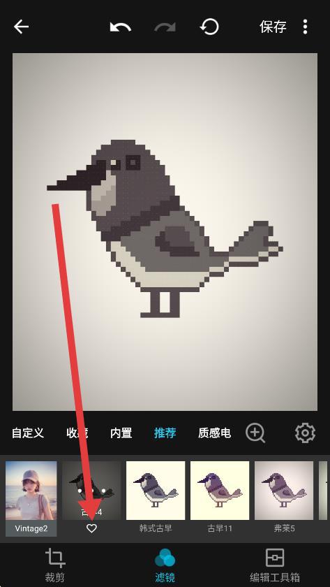 4、点击滤镜下方的心形图标,即可成功收藏滤镜。