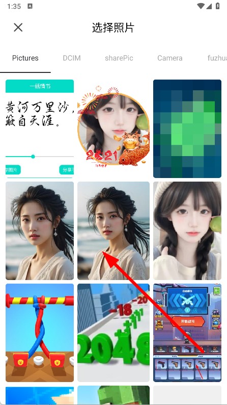 3、在选择照片页面,选择想要修图的照片,点击导入。