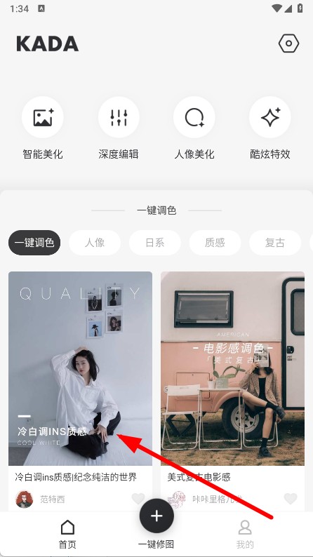 1、打开APP,在首页选择喜欢的滤镜风格,点击进入滤镜详情页。