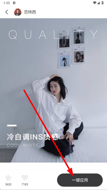 2、在滤镜详情页,点击一键应用按钮,进入选择照片页面